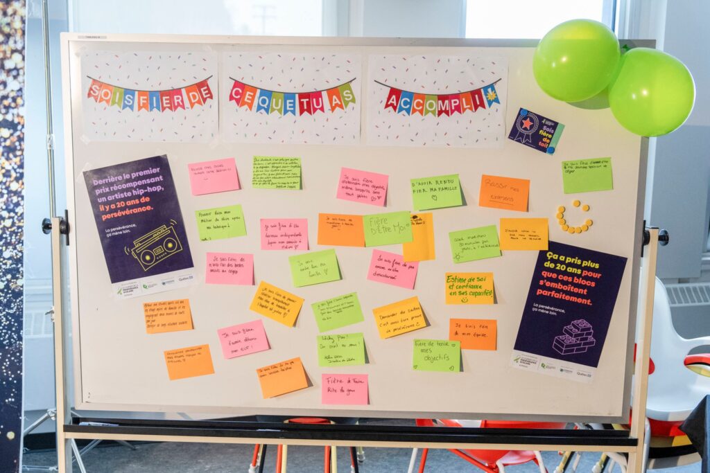 Des dizaines de messages inspirants y sont affichés sur de petits morceaux de papier.